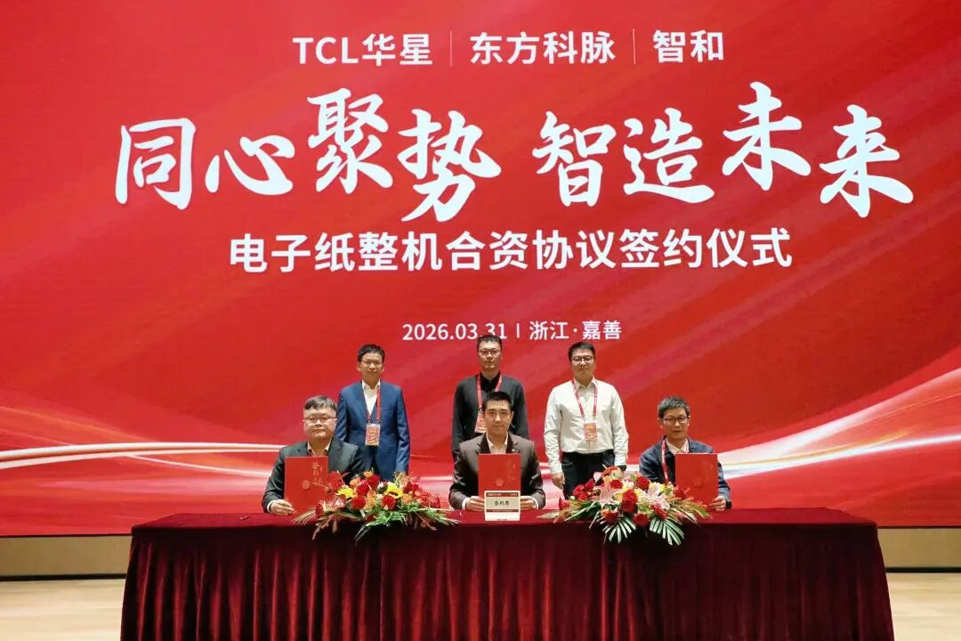 2026年3月31日,TCL华星光电技术有限公司(以下简称TCL华星)、浙江东方科脉电子股份有限公司(以下简称DKE东方科脉)与深圳市智和发展科技有限公司(以下简称智和科技)电子纸整机项目合资签约仪式,在DKE东方科脉嘉善富涌总部制造基地隆重举行。