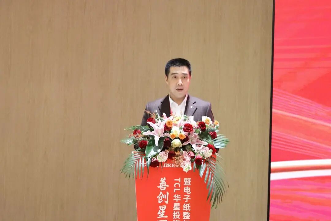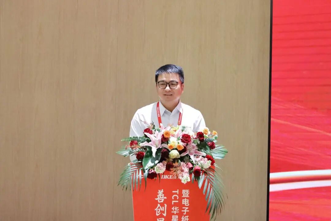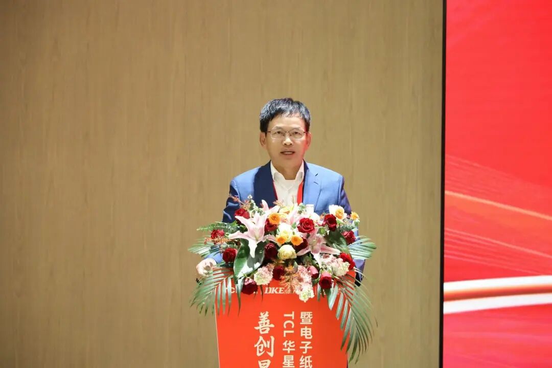 随后,TCL华星光电技术有限公司专显BU总经理刘广辉上台致辞,他阐述了TCL华星布局嘉善的战略考量,强调嘉善政府的政策支持与DKE东方科脉的本地资源优势,极大增强了项目落地的信心,期待与DKE东方科脉、智和科技携手,实现技术、产能、资源与市场等全方面1+1+1>3的深度协同,共创电子纸产业新未来。