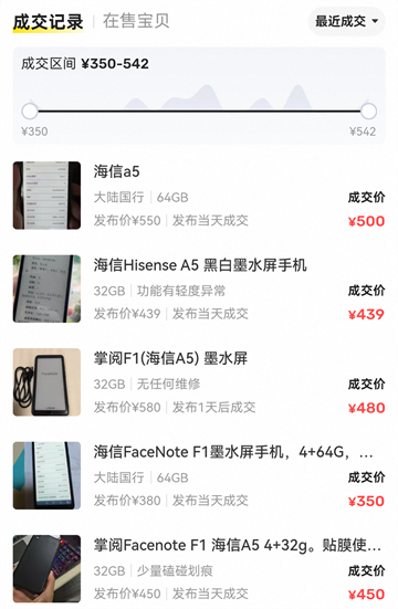 海信A5这部墨水屏手机可以说是一款优点和缺点都极其鲜明的创新产品,当年也是独一份,记得当年还有打卡0元购的活动,那时候打卡结束后,很多人出手,然后三百左右就能拿下,现在好了,反而是越老越经典了,到了五百左右,而且已经坚挺好久了~