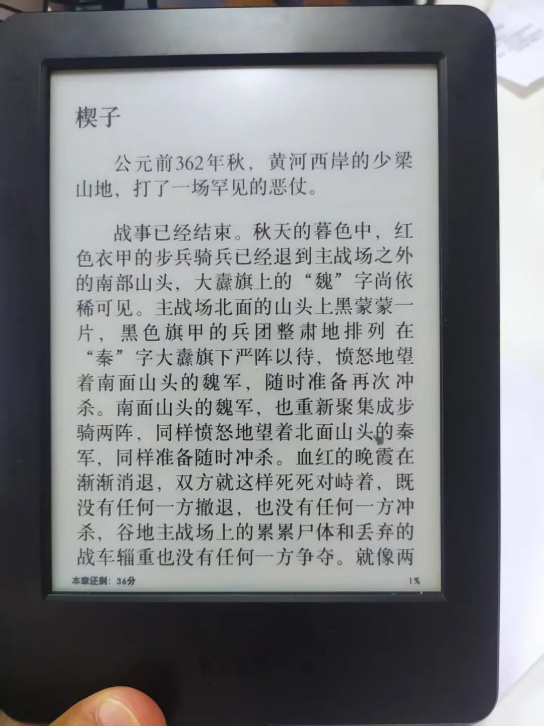 现在出门想看书就方便多了,不用像以前那样带一本纸书。虽然这个阅读器没有背光,只能白天使用,但是出门坐车的时候特别方便,存上几部书,随时随地都能看。