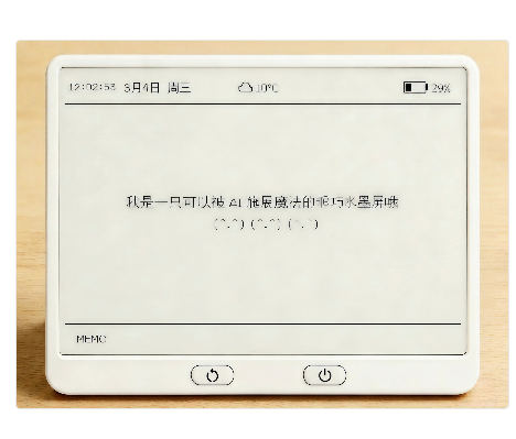 显示场景:墨水屏电子相框、桌面摆件、墙面装饰屏,展示照片、壁纸、氛围图。