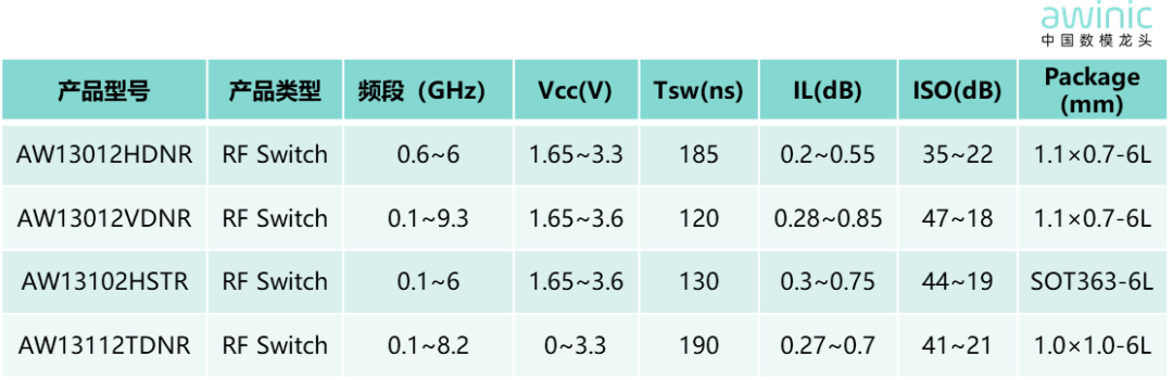 艾为电子适配RFID的RF Switch产品,具有超快切换时间(120ns,优于友商20%以上)、低插损、封装形式丰富等优势。