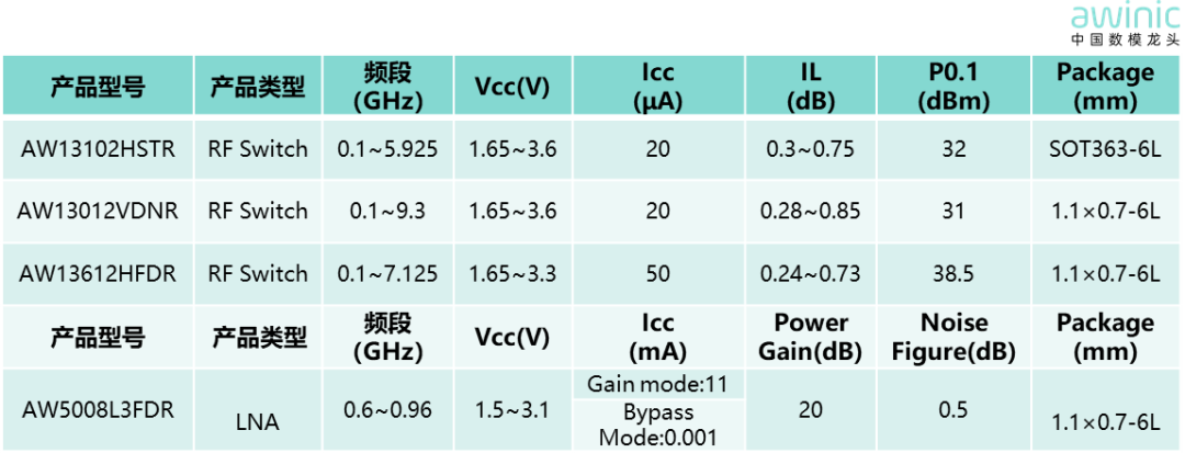 艾为电子适配Lora的RFFE产品,具有低功耗(20μA,优于友商20%以上)、低损耗和封装形式丰富等优势。