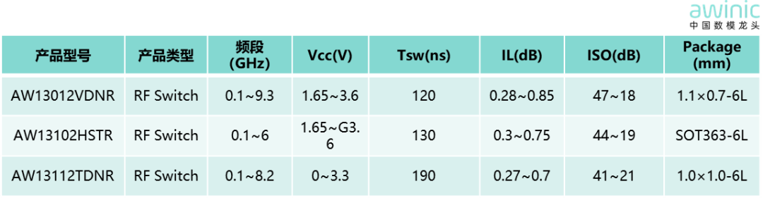 艾为电子适配UWB的RF Switch产品,具有车规认证、超带宽和低插损等优势。
