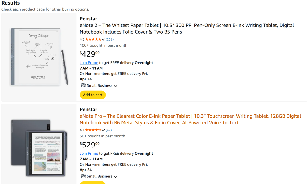 汉王在海外使用的子品牌叫作Penstar,定价走的是高端路线,卖得一点也不便宜。