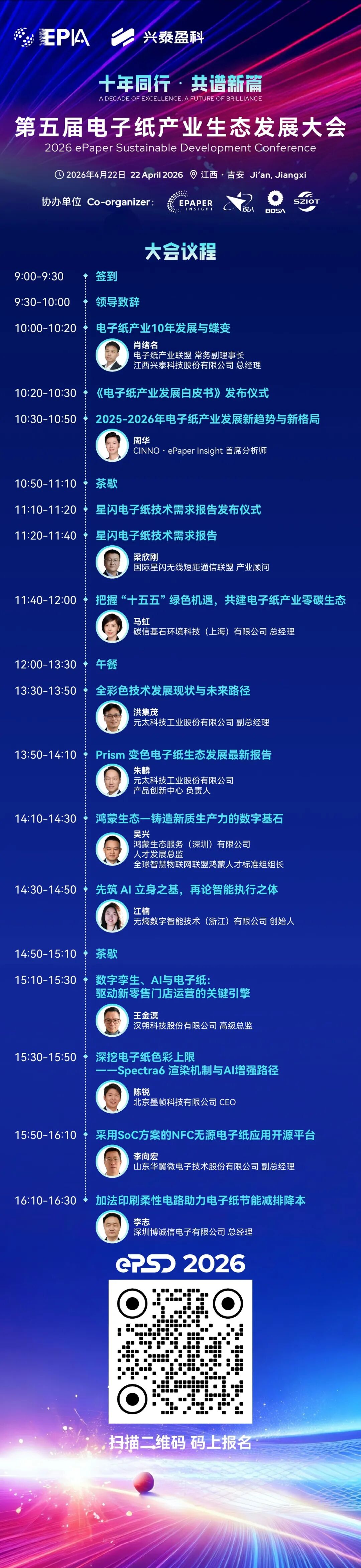 值此产业十年节点,电子纸产业联盟将于4月21-23日在江西吉安十里芳菲・钓源古村召开「第五届电子纸产业生态发展大会」(ePSD 2026)。