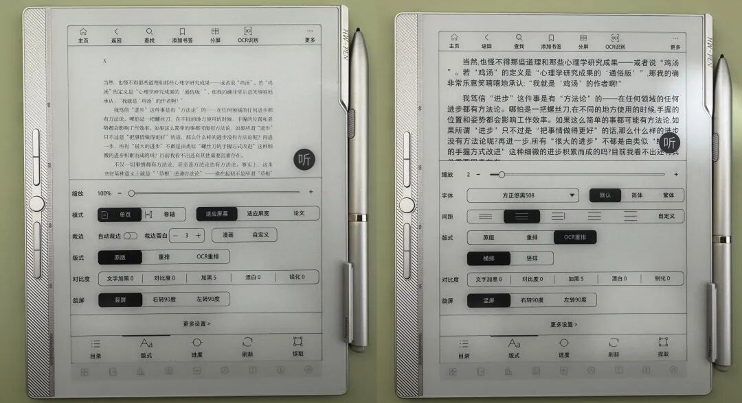 这种“屎上雕花”的活毫无意义。直接利用汉王的OCR功能,不限次数,尽情重排文字,复制粘贴了事。(下图:左边是原PDF,字迹较淡,右边重排后清晰可复制的文字)
