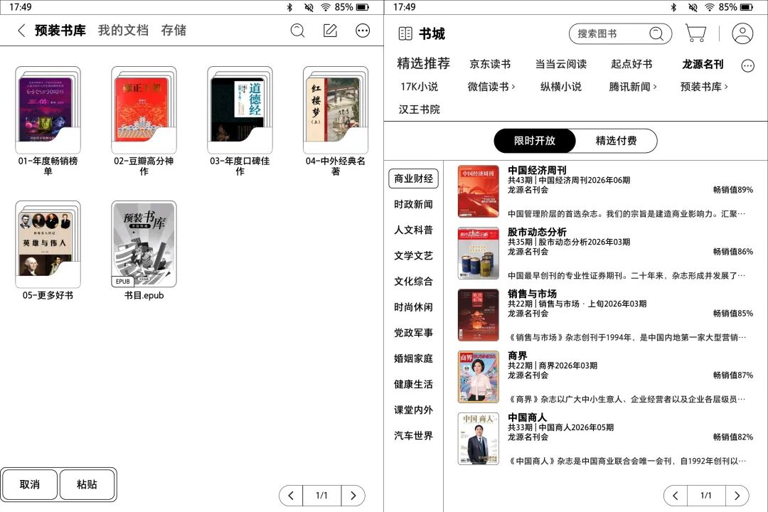 如果你是个怕麻烦、头疼到处找资源的人,汉王内置的1300多本正版热门书能帮你省很多事。每月还有40多种期刊免费阅读。