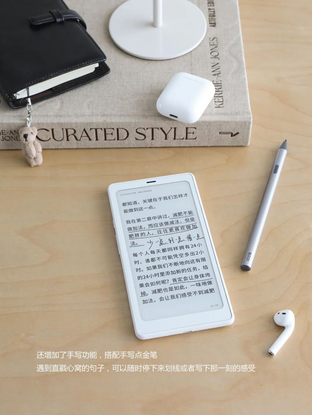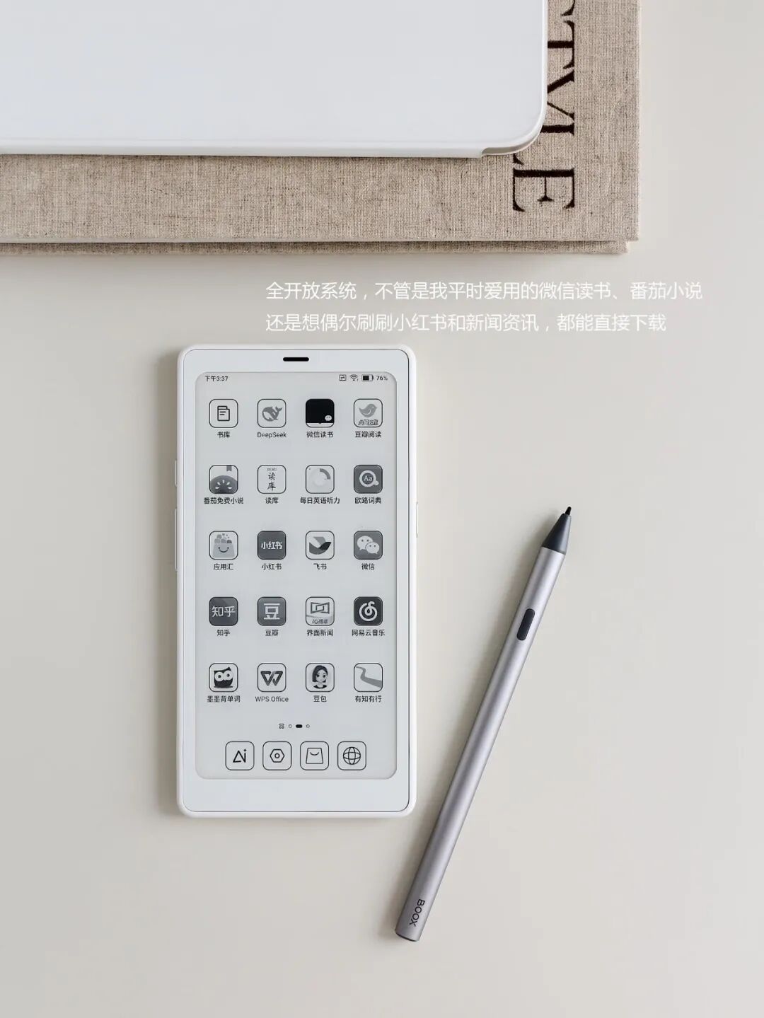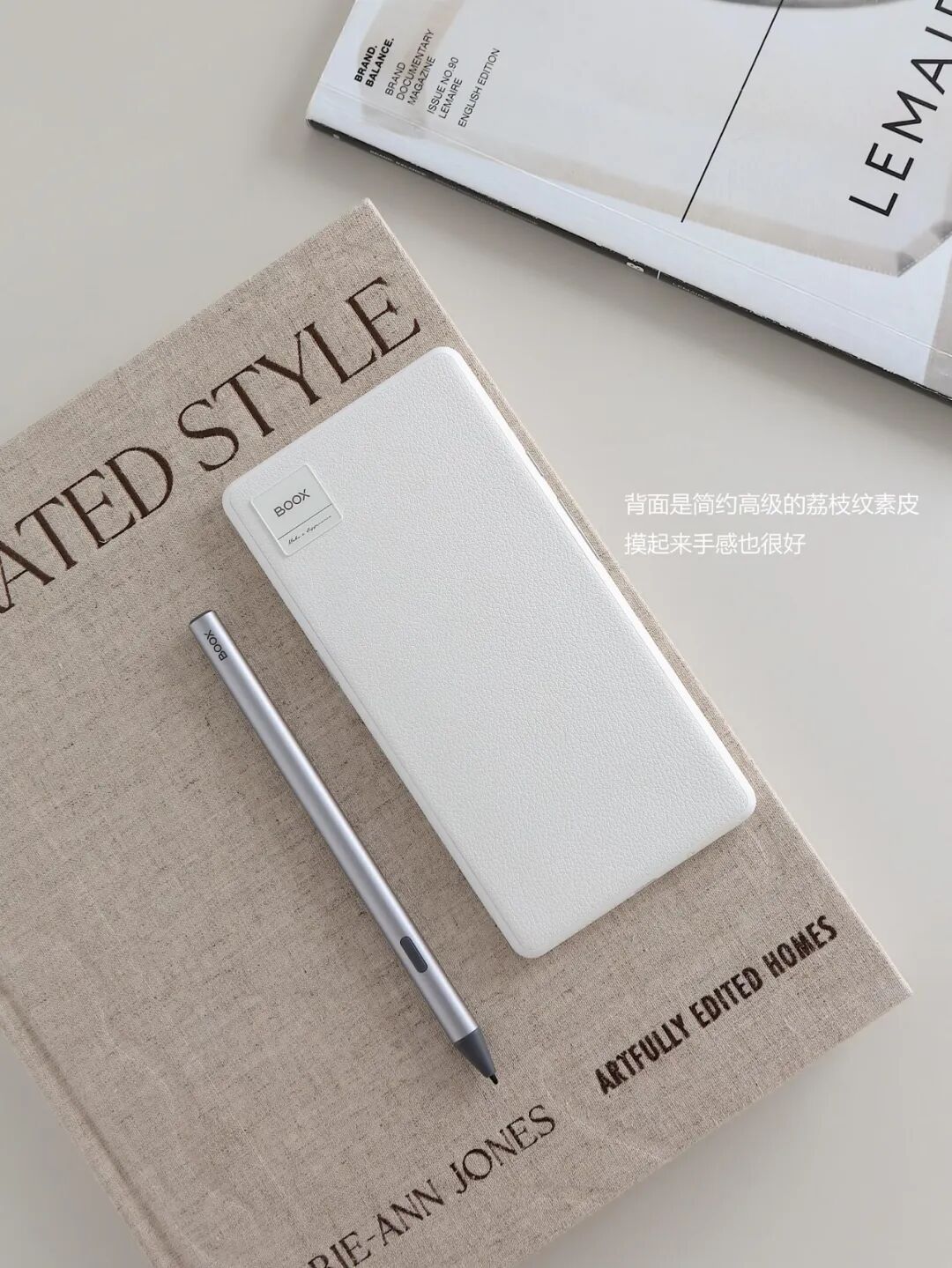 它和手机差不多大,揣在口袋里毫无负担,荔枝纹素皮背面质感拉满,颜值戳中审美,握在手里像一本精致手帐。云光屏适配各种光线,无蓝光不费眼,翻页顺滑无卡顿,全开放系统能下载各类APP,加上手写功能,划线批注、做笔记、记电子手帐都很顺手。