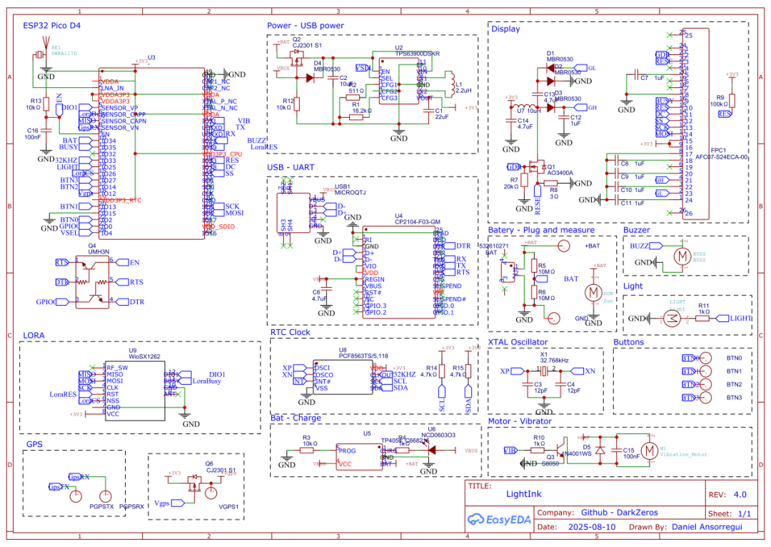 LightInk,一款基于ESP32-PICO-D4 SiP的开源太阳能供电的电子墨水屏手表,灵感来自90年代的太阳能数字手表。它配备1.54inch电子纸显示屏,支持Wi-Fi、蓝牙、LoRa和GPS,使用100mAh电池供电。