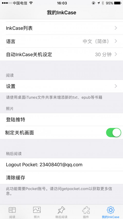 电子书阅读是其最大的亮点,其支持 ePub 和 TXT 格式的电子书。用户可以在手机上选择文件推送到 InkCase 中,可以达到纸书的阅读体验。同时为了满足不同人士的需求,其可以定义字体的大小和行距。