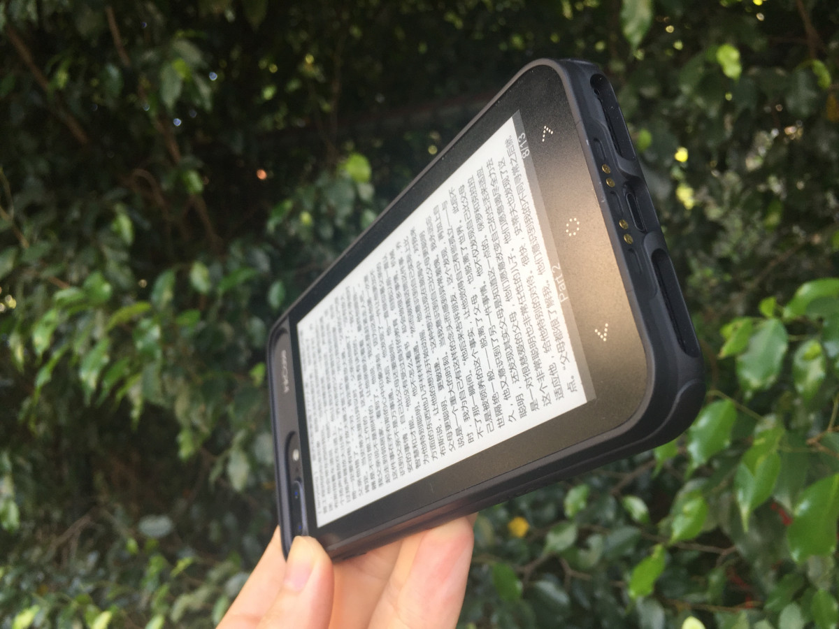 InkCase i7 Plus 最大的卖点就是这个 E Ink 屏幕,其拥有超高的对比度,具备 16 个灰度级。即使是在户外强光下,也能清晰地阅读所显示的文字或者图片。其配置了 5.2 寸的屏幕,分辨率是 540 * 960,217dpi(其小弟 InkCase i7 是 4.3 寸的 480*800 分辨率,重量是 60g),使用 Carta 1.2 E Ink,它是同类中最好的能提供高对比度照片和纸样阅读体验的屏幕。 再加上 PMMA 盖板,可以达到防眩光的目的。