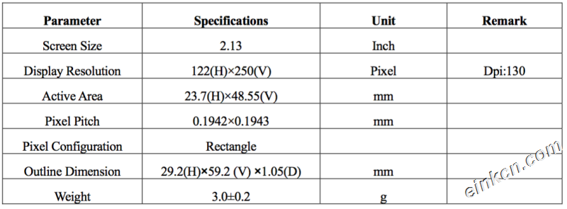 3. E0213A22—2.13寸电子墨水屏规格参数