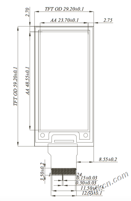4. E0213A22—2.13寸电子墨水屏外形尺寸