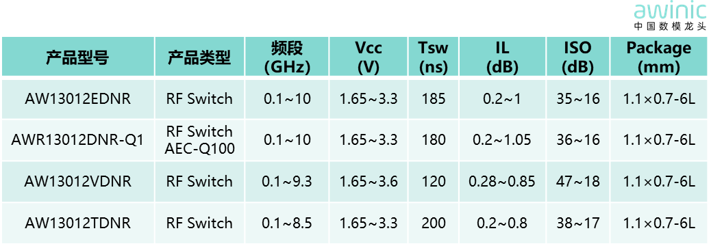 艾为电子适配UWB的RF Switch产品,具有车规认证、超带宽和低插损等优势。