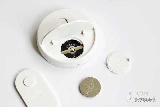 内置一个CR2430纽扣电池,官方表示续航一年没问题。不过有点遗憾为什么不是CR2032呢,感觉CR2032更通用一些,基本上很多设备都用的上,一买买一板。