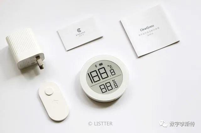 因为不需要充电,配件也清爽多了。其中有个带磁铁的小板,背面撕掉贴纸可以粘在墙上,通过上面圆形的凸起贴片来和青萍温湿度计内部的此贴吸合,即可以固定在墙面,也可以随时取下来放在桌子上。