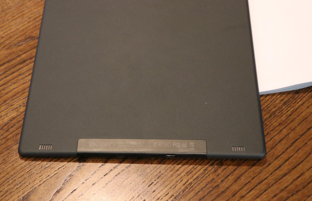 570g的重量跟iPad pro差不多,在13.3寸的巨屏电纸书里面并不算特别重,拿起来并不会觉得累,不过相比索尼Dpt-RP1这种只有349g的极致重量,确实逊色不少,Max lumi的前光模组和固定背板确实会增加不少重量,不过也更加抗摔。厚度为7.9mm,也是非常薄的,比一般报亭上买到的杂志还要薄。