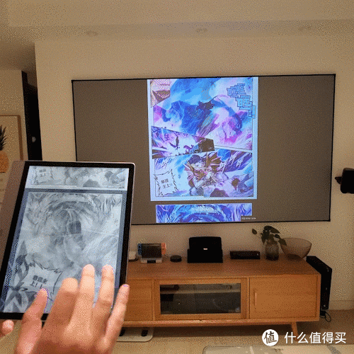 我测过在镜像模式下,投在投影上的画质丝毫不受“刷新模式的影响。(GIF图并未加速)