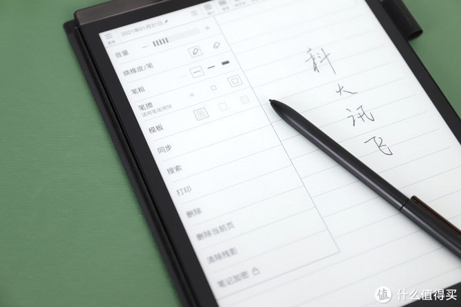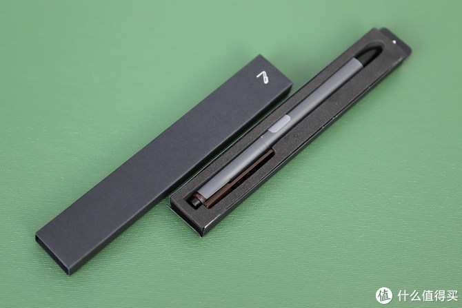 Wacom讯飞定制电磁笔的重量只有9g,跟常用的水性笔差不多,但是机身还略细,手感也相当不错,日常可以挂在主机身右侧的笔套里。