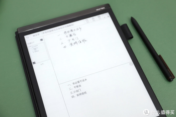 笔记是最常用的功能,采用了跟电脑资源管理器类似的浏览方式,你可以新建文件夹、最新笔记、语音记录等,点击最新笔记,可以显示最新创建的笔记,也可以新建一个写作。在新建写作里,你可以选择一个适合的模板,以及选择笔尖粗细,还包括笔擦大小等(也可以用手写笔的顶端擦除),之后就可以手写记录会议笔记了。