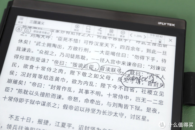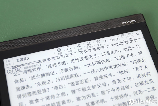 除了强大的手写和语音转换、翻译功能,讯飞智能办公本X2还支持电子阅读功能,自带讯飞、当当两大书城,数十万优质图书资源,其中数万册免费。支持的书籍格式有PDF、EPUB,TXT,MOBI,以及Office文档:DOC,DOCX,XLS,XLSX,PPT,PPTX等,而且在阅读时还支持字号大小设置,对比度设置,以及在阅读中的批注等功能。不过比较遗憾的是,这款办公本不带背景光,所以想要在晚上光线不好的环境里看书,是一件比较困难的事儿了。