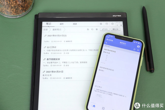 讯飞智能办公本X2还支持云端同步,只需要在手机端安装一个读写客APP,登录账号后,就能与办公本信息进行同步了,更加便于查询,也多了一个备份。