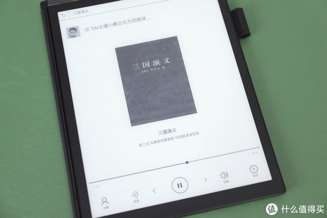 此外,讯飞智能办公本X2采用讯飞语音合成技术,支持AI模拟真人声音,不同于机器合成声,可朗读书籍、新闻、网文等,抑扬顿挫、惟妙惟肖。用户可以在听读界面选择主播,有男声和女声,支持语速和音量的调节,如果晚上睡觉前听,还可以设置定时,在阅读一定时间后停止。