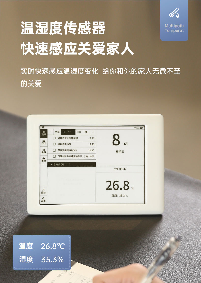 智能多功能日历,高效工作和规划,工作生活代办提醒,番茄工作法,四象限看板,温湿度感知,20天超长待机