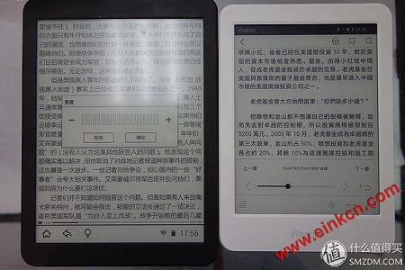 与分辨率为265PPPI的掌阅IREADER PLUS相比,在未使用前照光时,显示效果也差异不大,不过,采用Carta屏且分辨率为265PPI的掌阅IREADER PLUS,看上去更加精细一些。