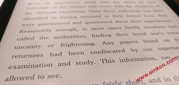 Despite the added size, the Aura One remains comfortable in the hand, with just a tenth of a pound of added weight over the six-inch Kobo Glo HD and six hundredths of a pound over the Kindle Paperwhite. The thin 6.9 millimeter profile and textured back help as well.