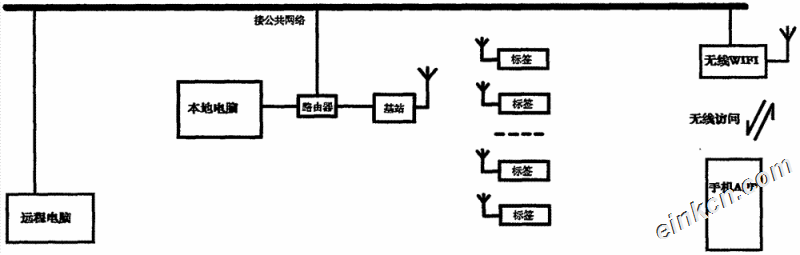 一种远程控制墨水屏电子标签系统,包括通过路由器连接公共网络的本地电脑,其特征在于,所述的路由器连接有基站,所述基站通过无线信号连接电子标签。